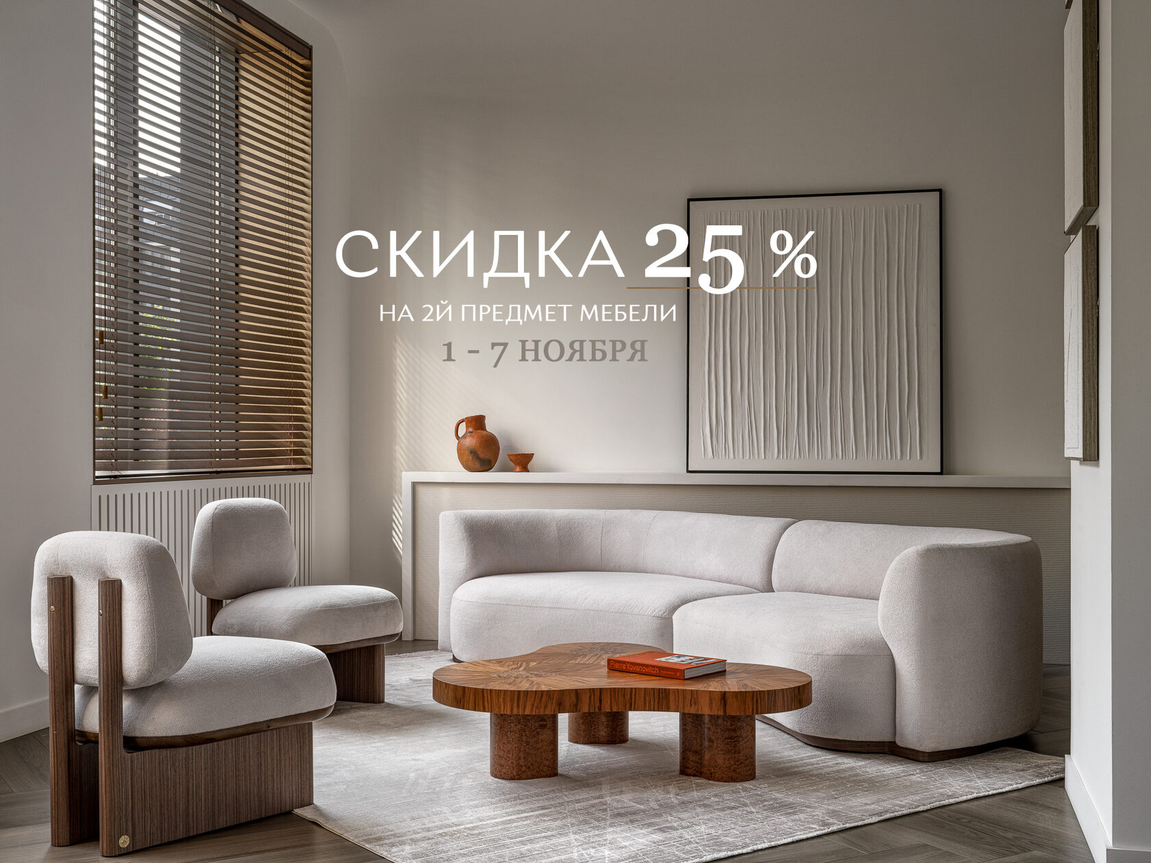 С 1 до 7 ноября дарим скидку 25% на каждое второе изделие в заказе.
